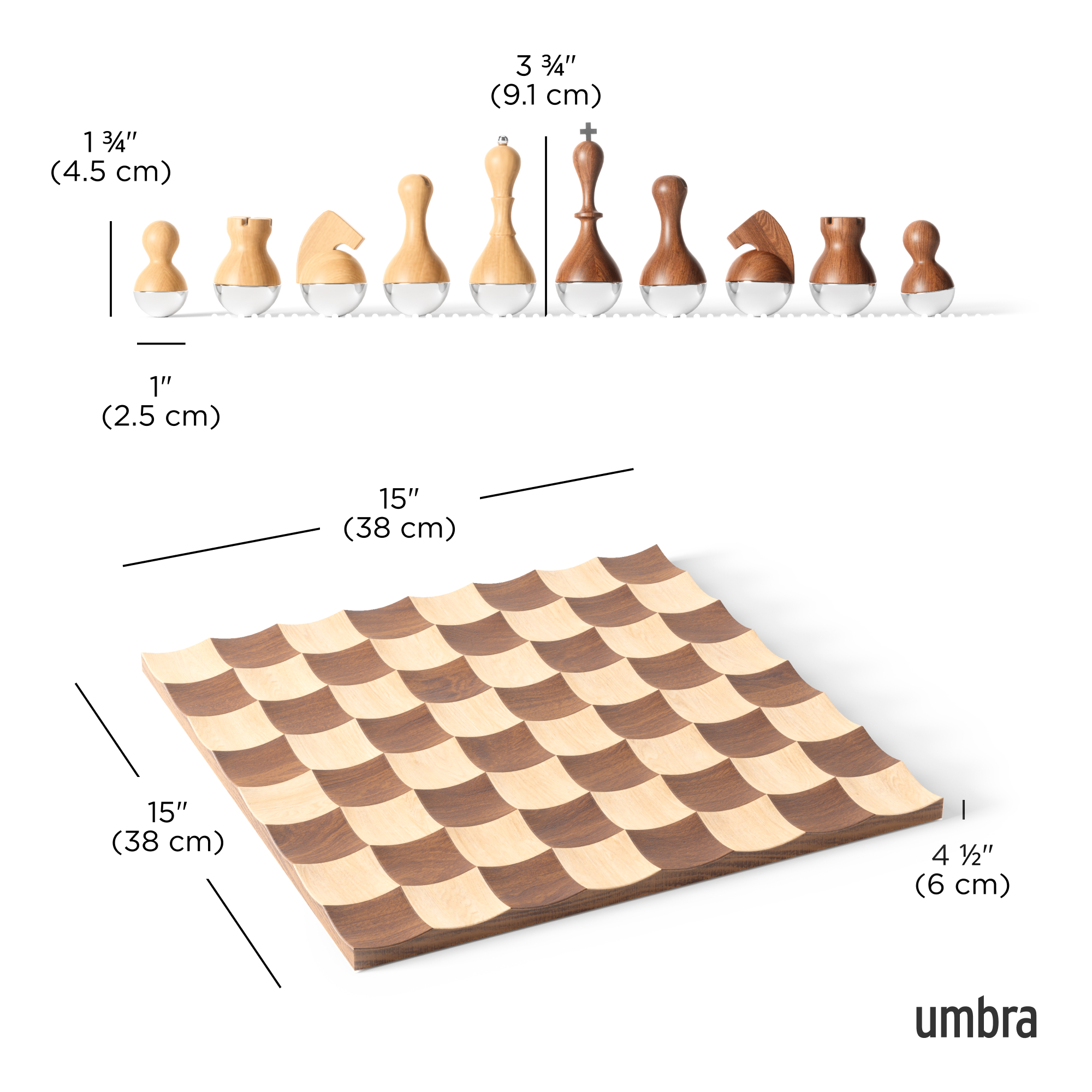 MADE OF MAPLE AND WALNUT: Wobble uses luxurious maple and walnut wood with plated chrome detailing for the ultimate beautiful modern chess set, sure to catch the eye of any viewer (or opponent)